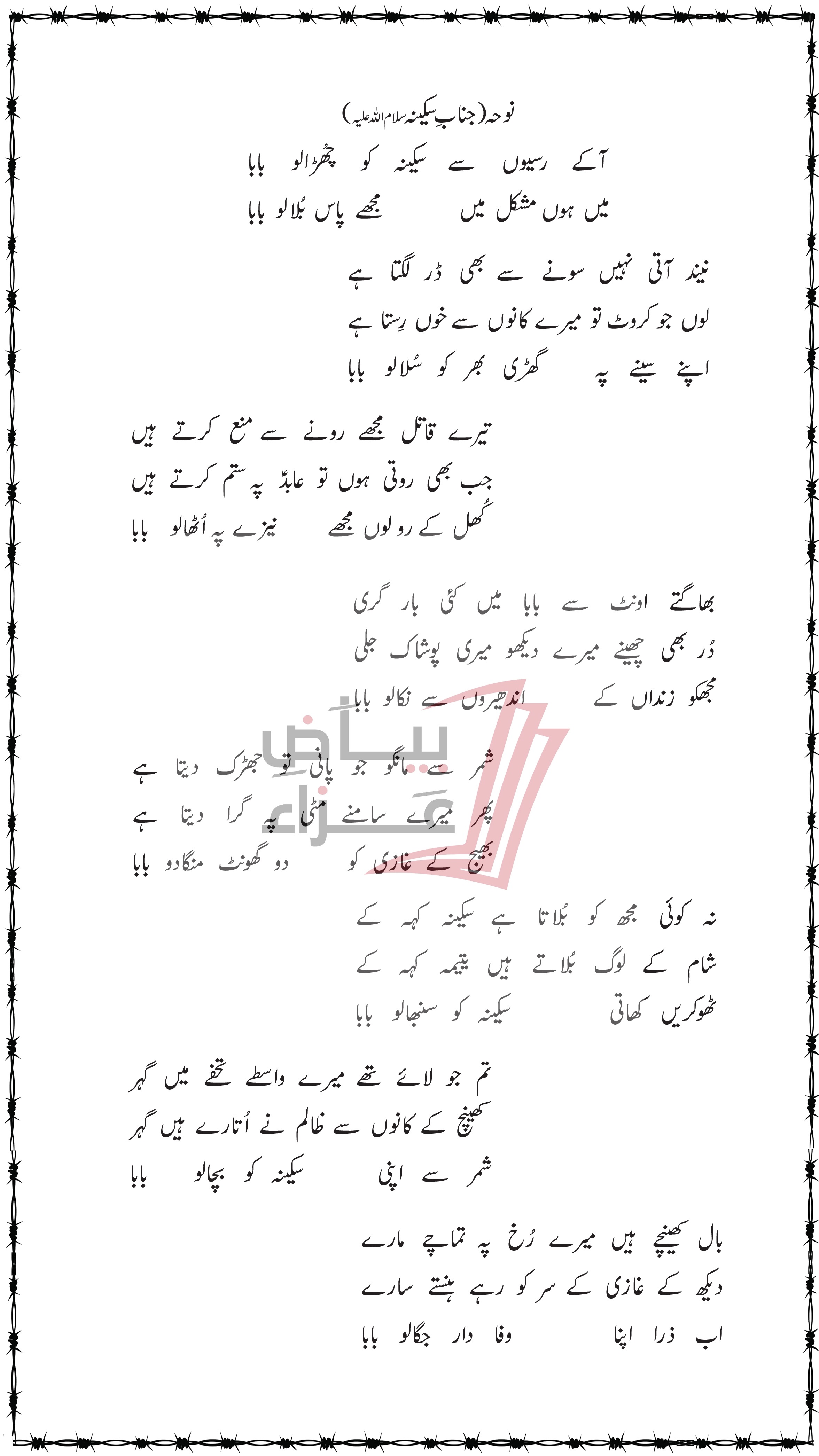 آ کے رسیوں سے سکینہ کو چھڑا لو بابا
