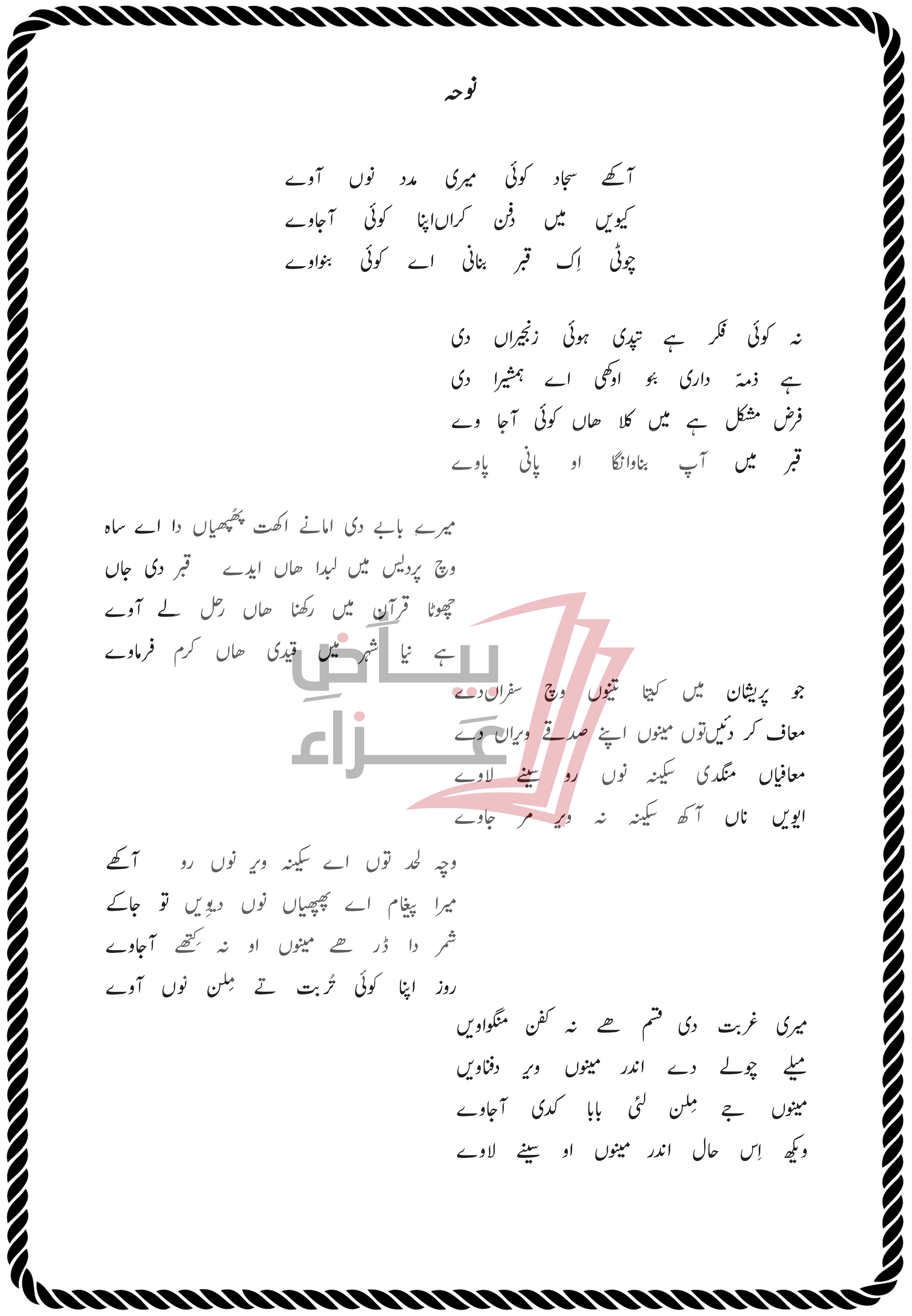 آکھے سجادؑ کوئی میری مدد نوں آوے