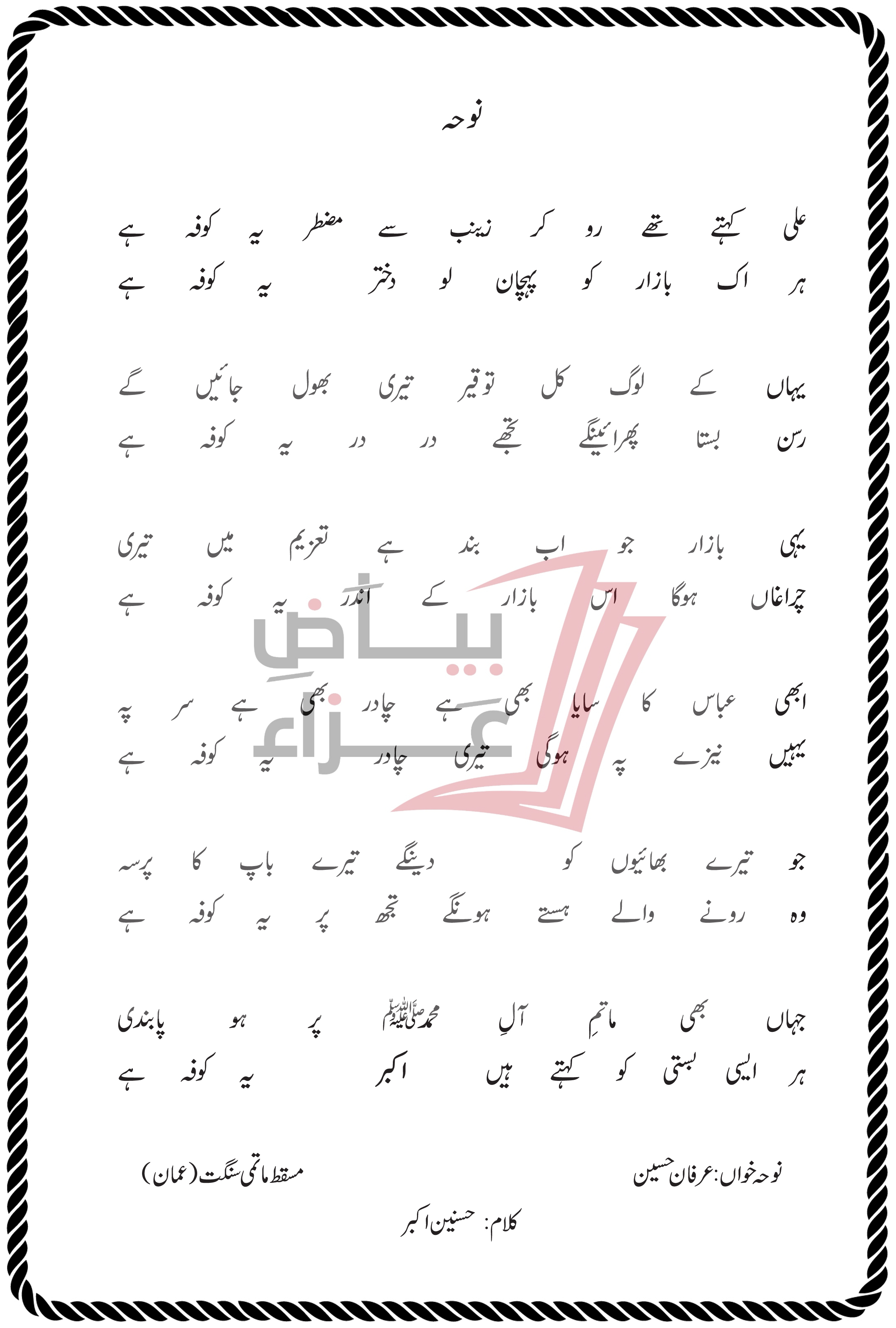 Ali kehte the roke zainab se muztar yeh koofa hai