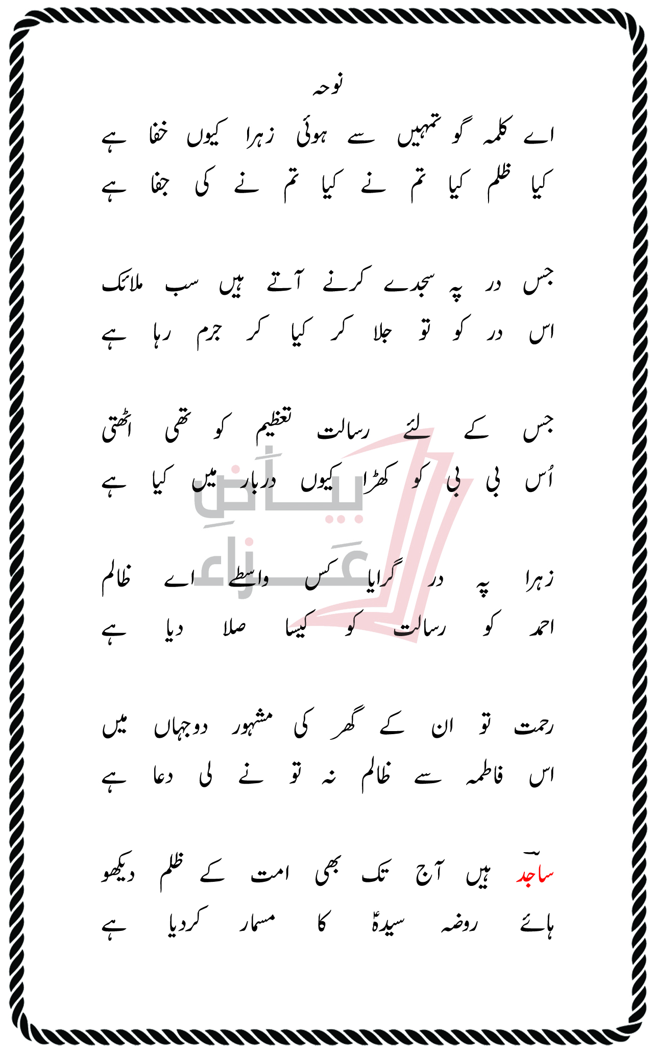اے کلمہ گو تمہیں سے ہوئی زہرا کیوں خفا ہے
