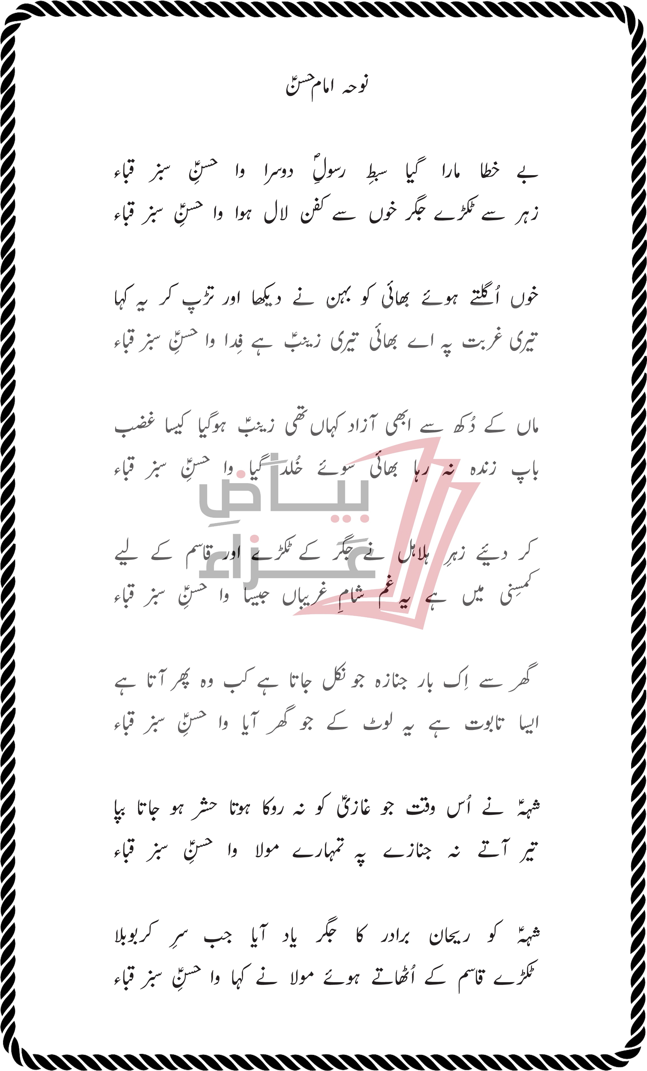 بے خطا مارا گیا سبطِ رسولِ دوسرا