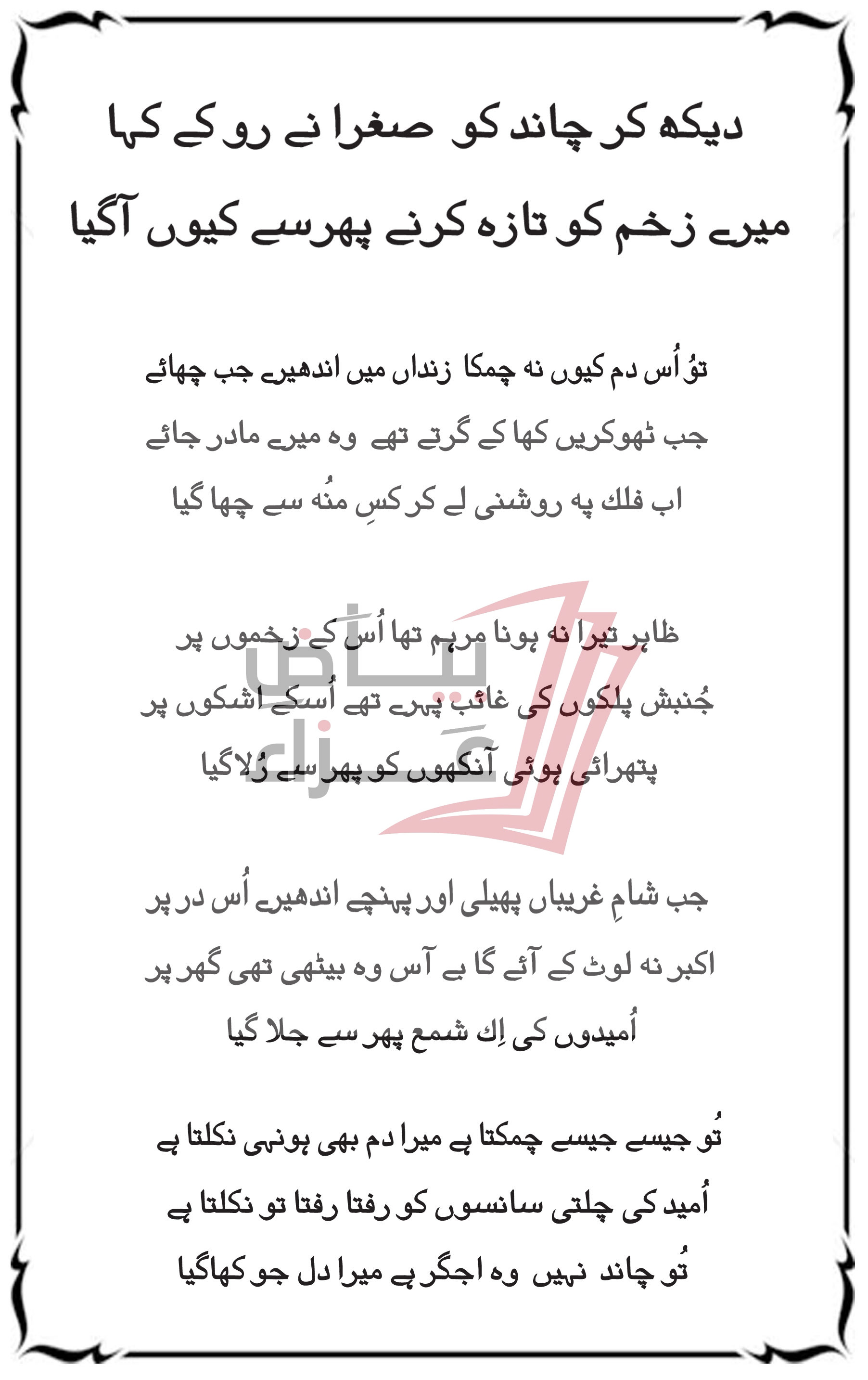 دیکھ کر چاند کو صغریٰ نے رو کے کہا