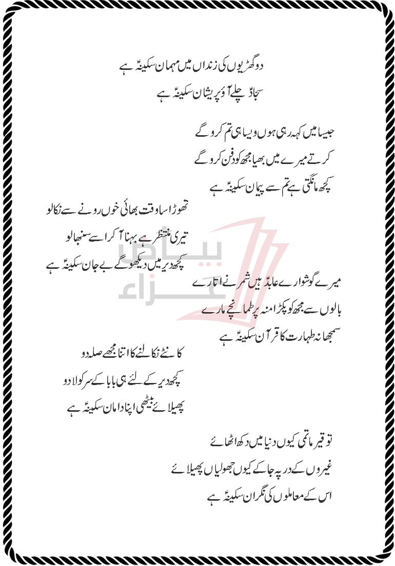 دو گھڑیوں کی زنداں میں مہمان سکینہ ہے