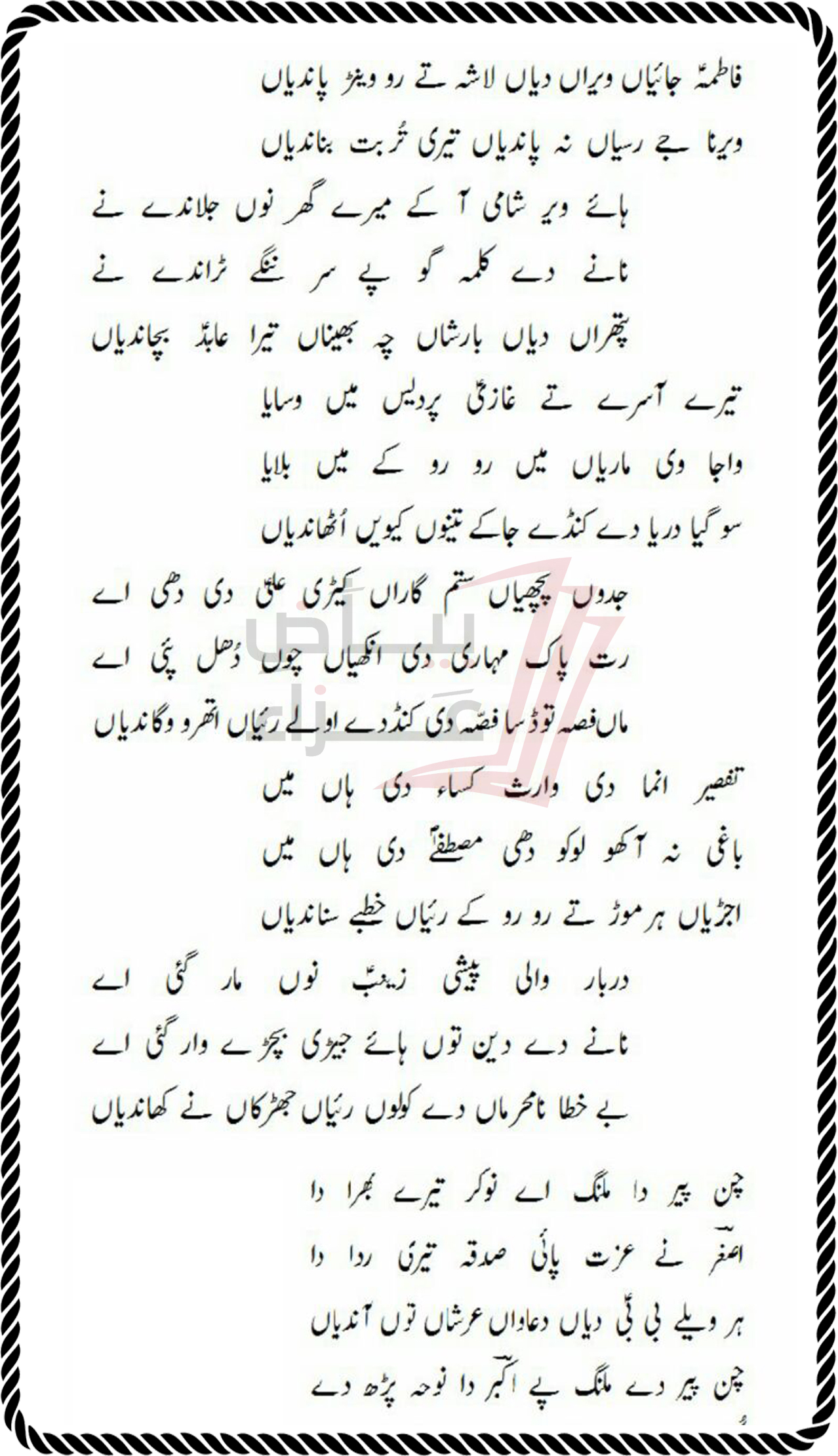 فاطمہ جائیاں ویراں دیاں لاشاں تے
