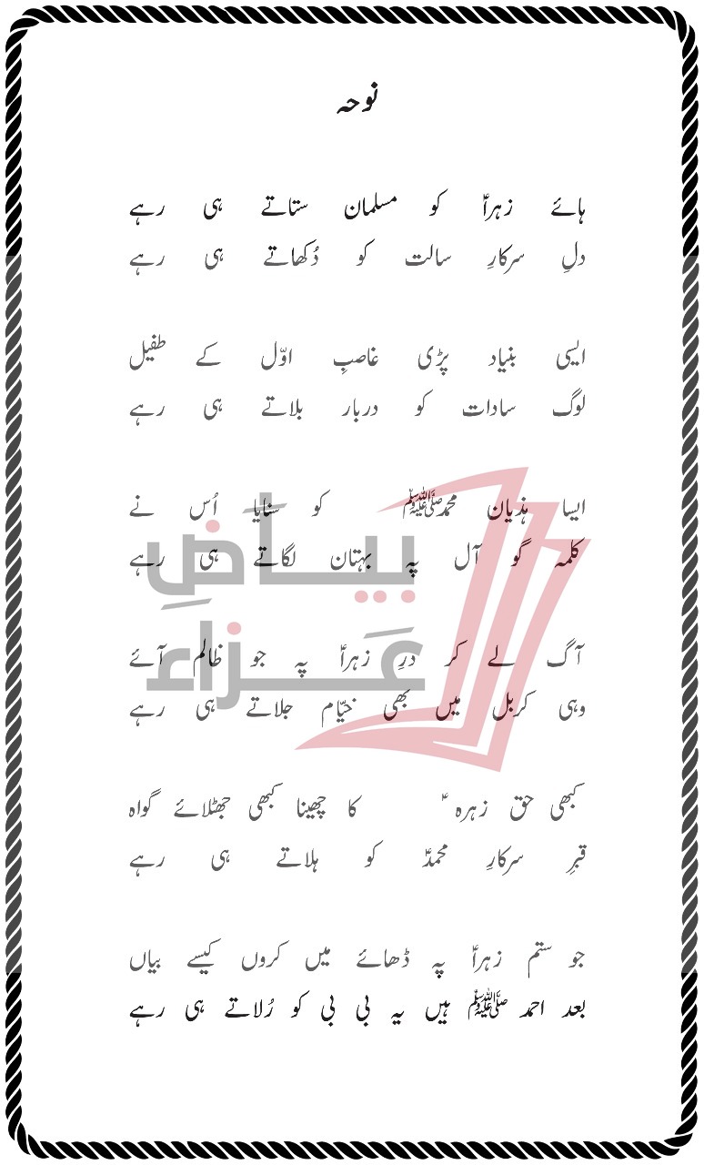 ہائے زہرا کو مسلمان ستاتے ہی رہے