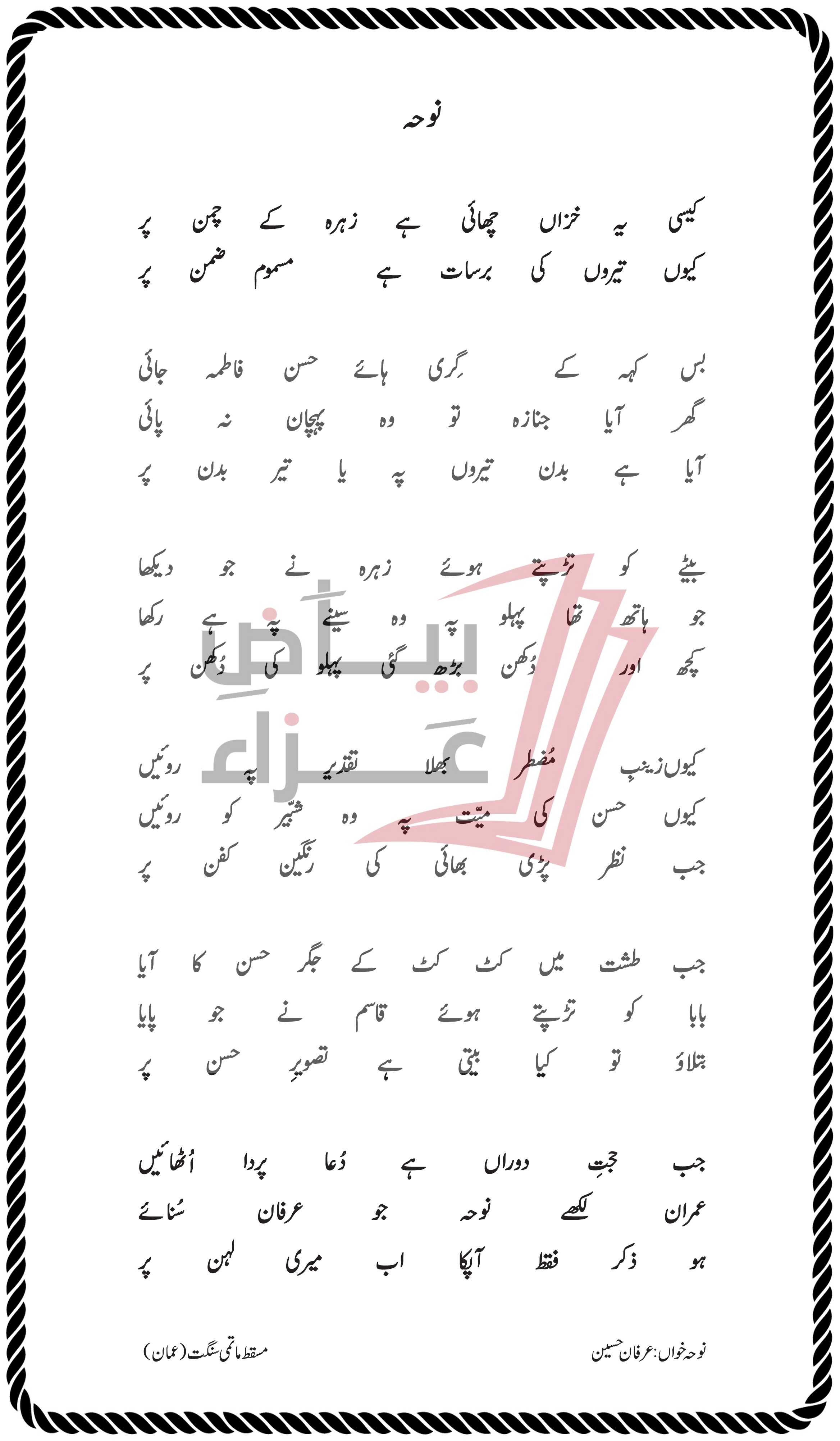 Kaisi yeh khizaa chai hai zahra ke chaman par