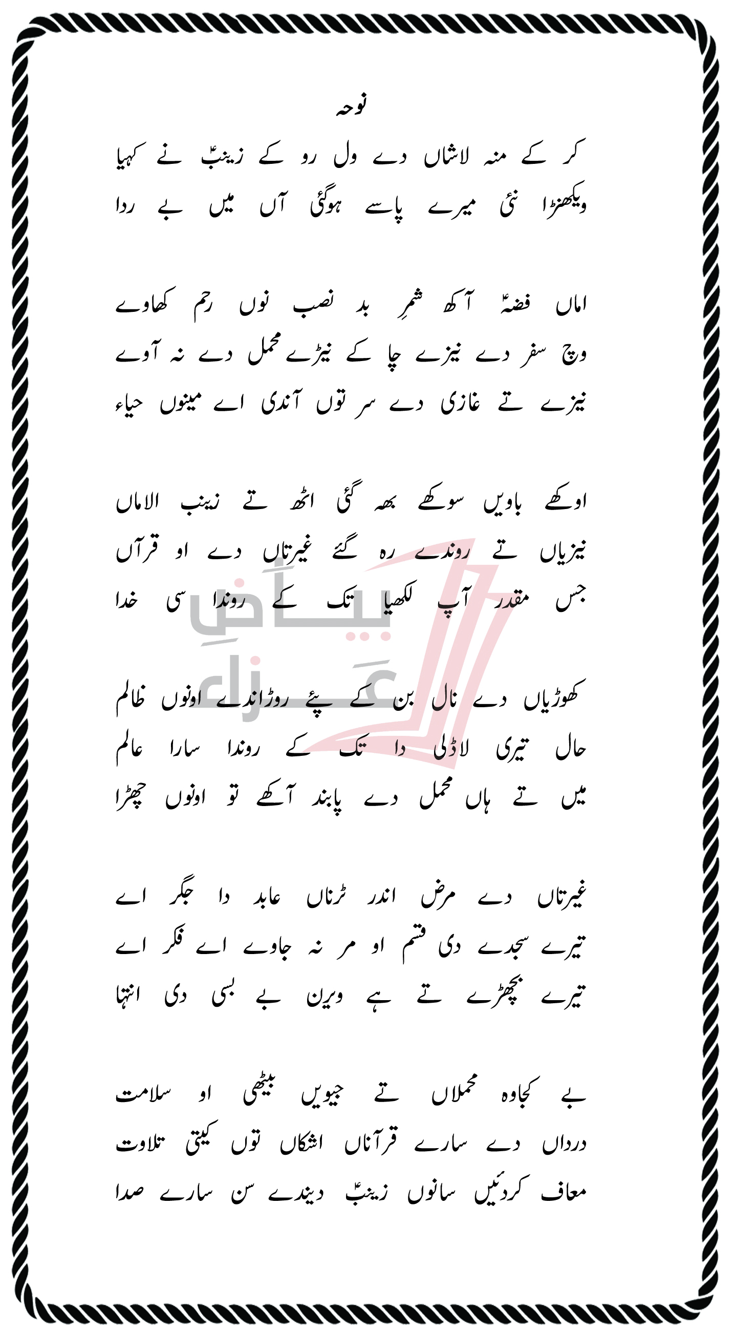 کر کے منہ لاشاں دے ول روکے زینبؑ نے کیا