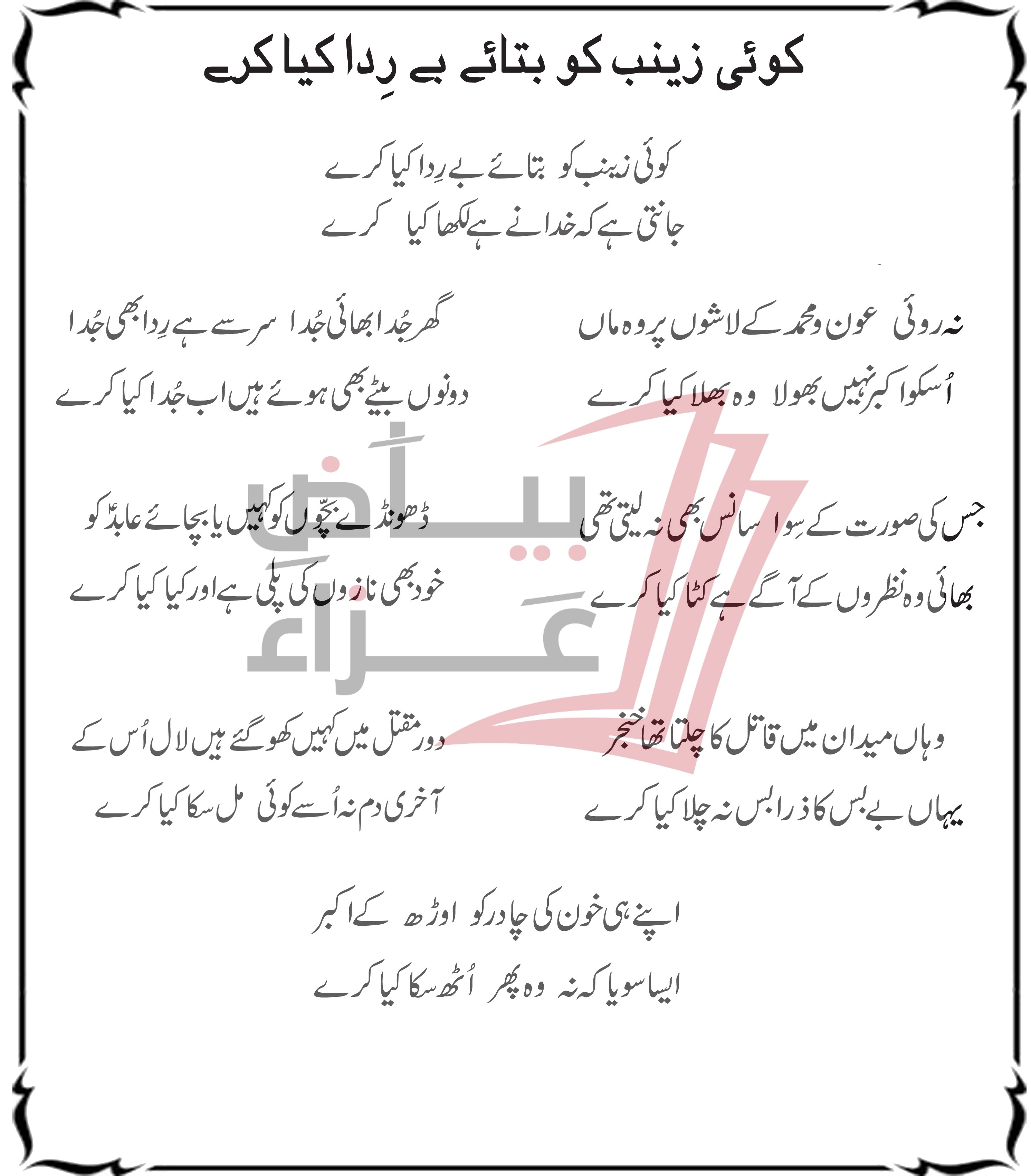 کوئی زینب کو بتائے بے ردا کیا کرے