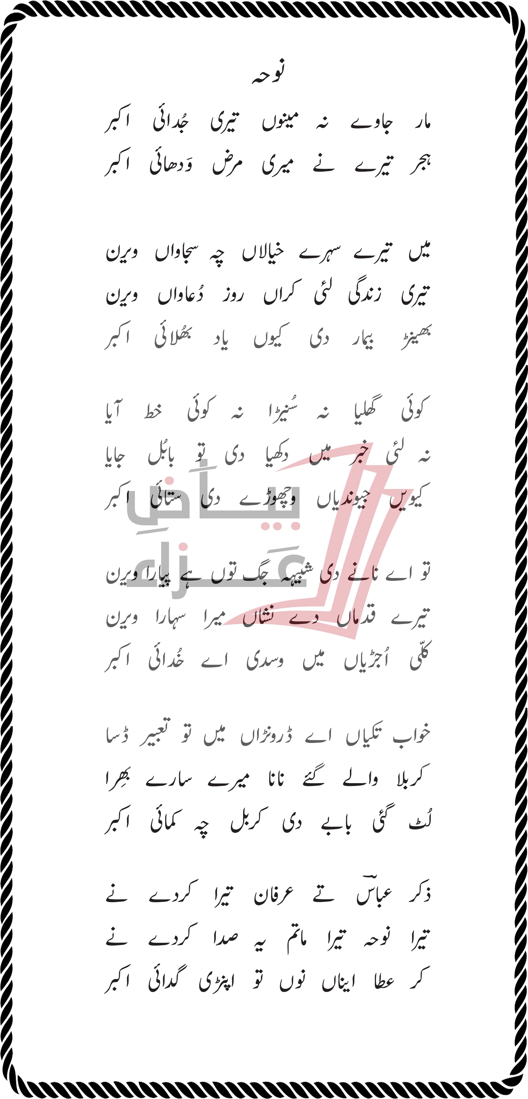 مار جاویں نہ مینوں تعری جدائی اکبر