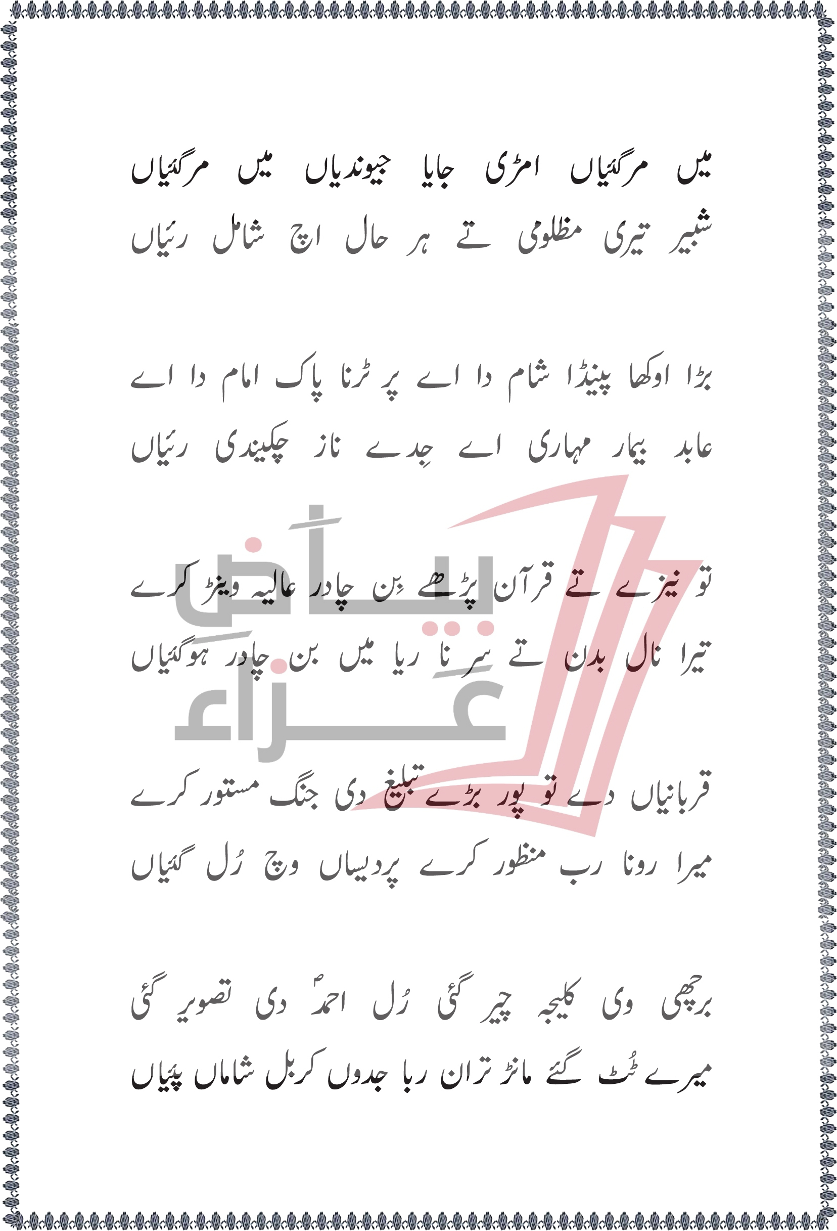 میں مرگئیاں امڑی جایا جیوندیاں میں مرگئیاں