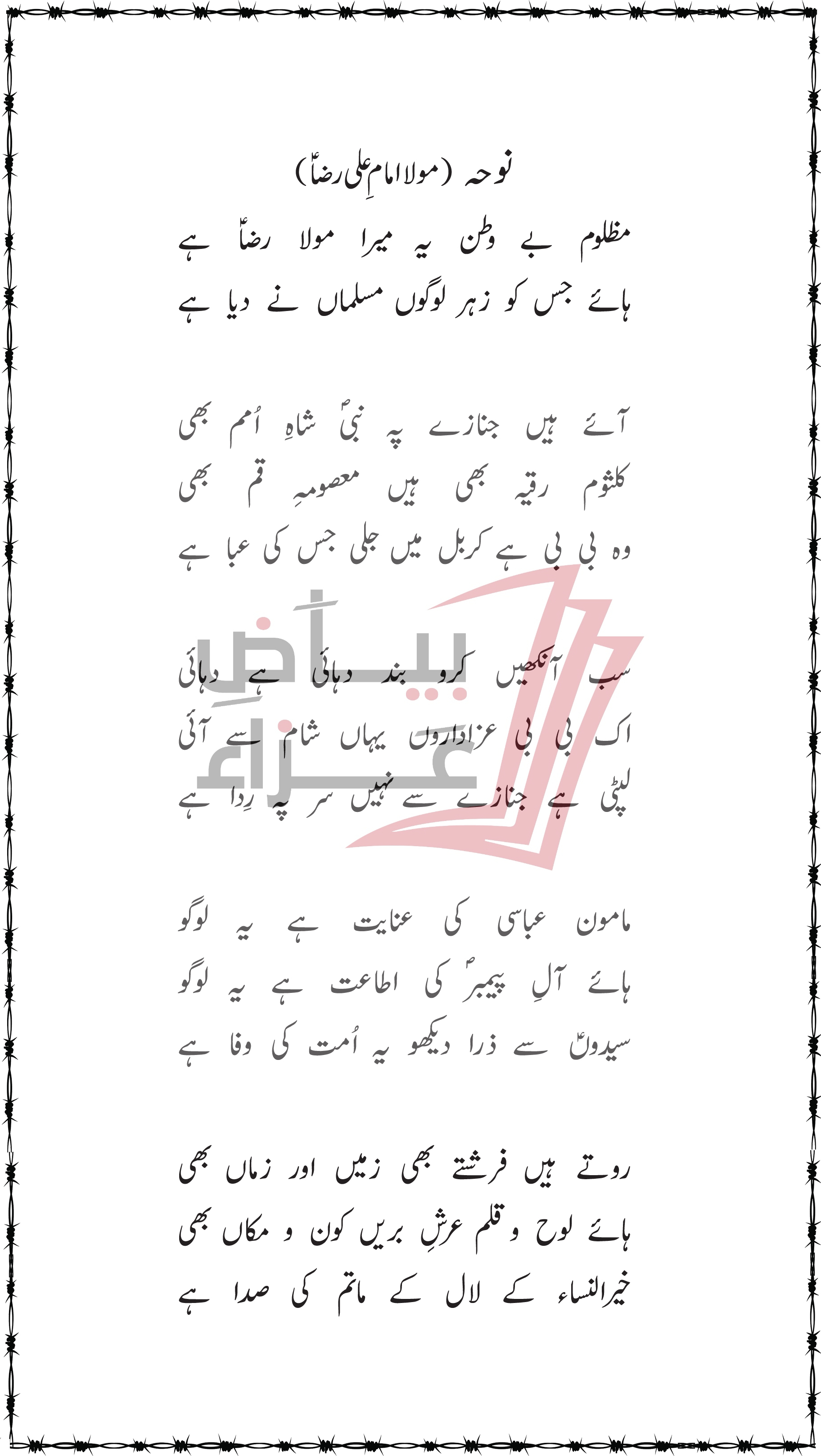 مظلوم بے وطن یہ میرا مولا رضا ہے