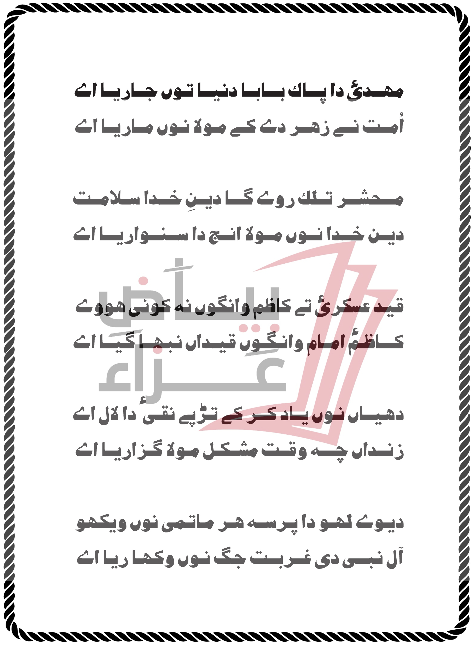 مہدی دا پاک بابا دنیا توں جاریا اے