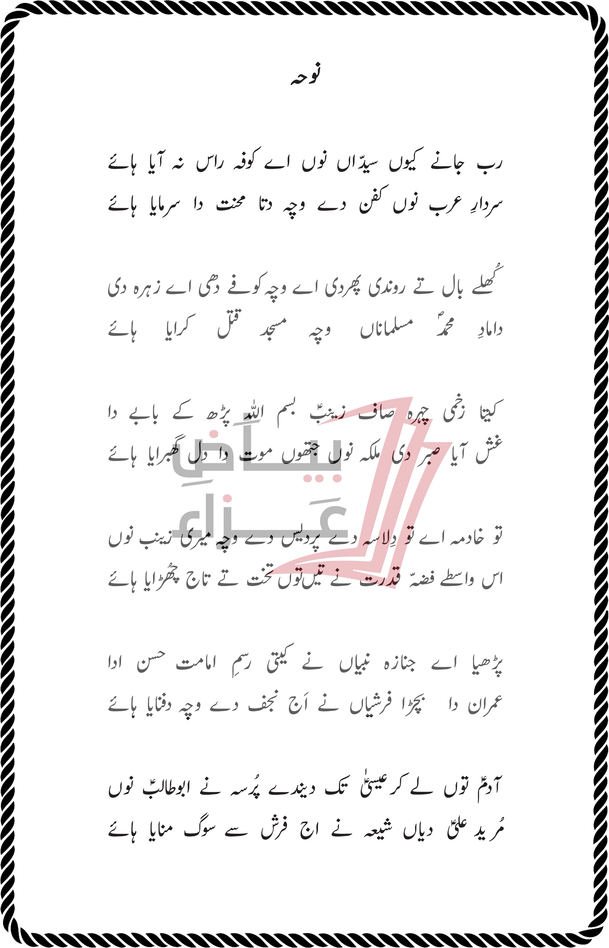 رب جانے کیوں سیدہ نوں اے کوفہ راس نہ آیا اے