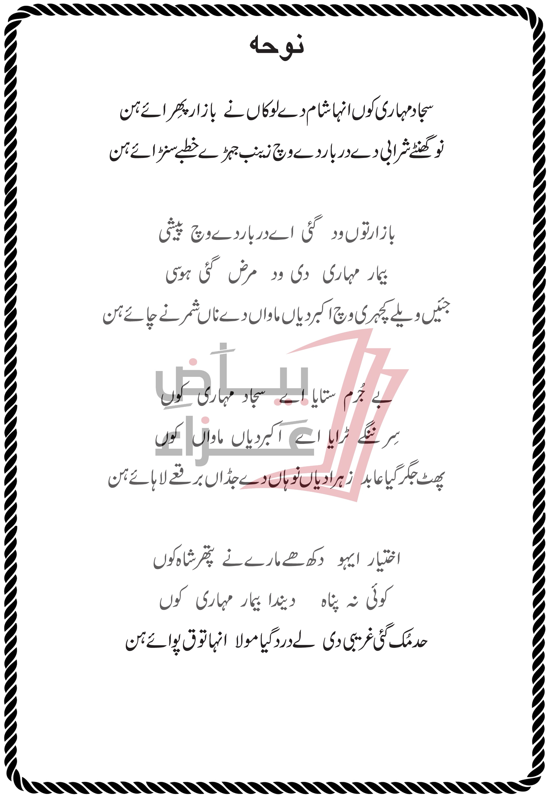 سجاد مہاری کوں انہا شام دے لوکاں نے