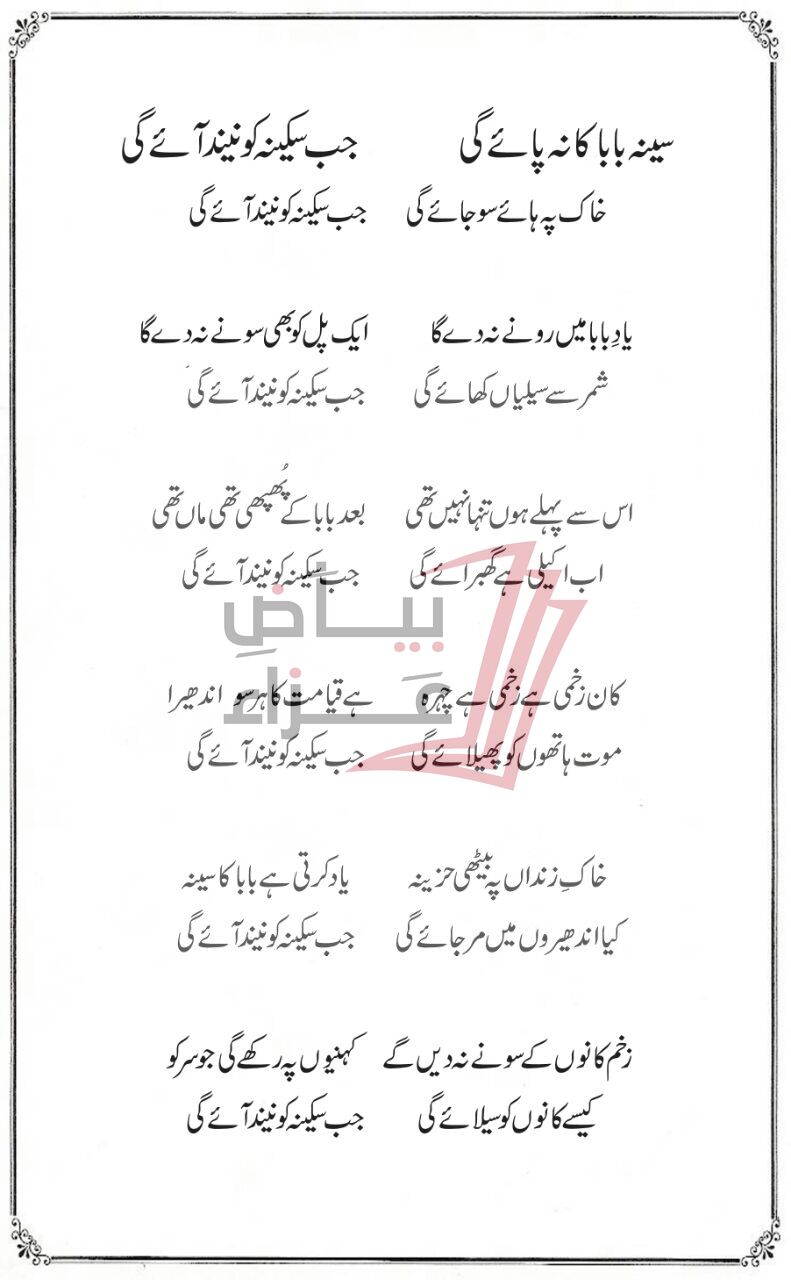 سینہ بابا کا نہ پائے گی جب سکینہ کو نیند آئیگی