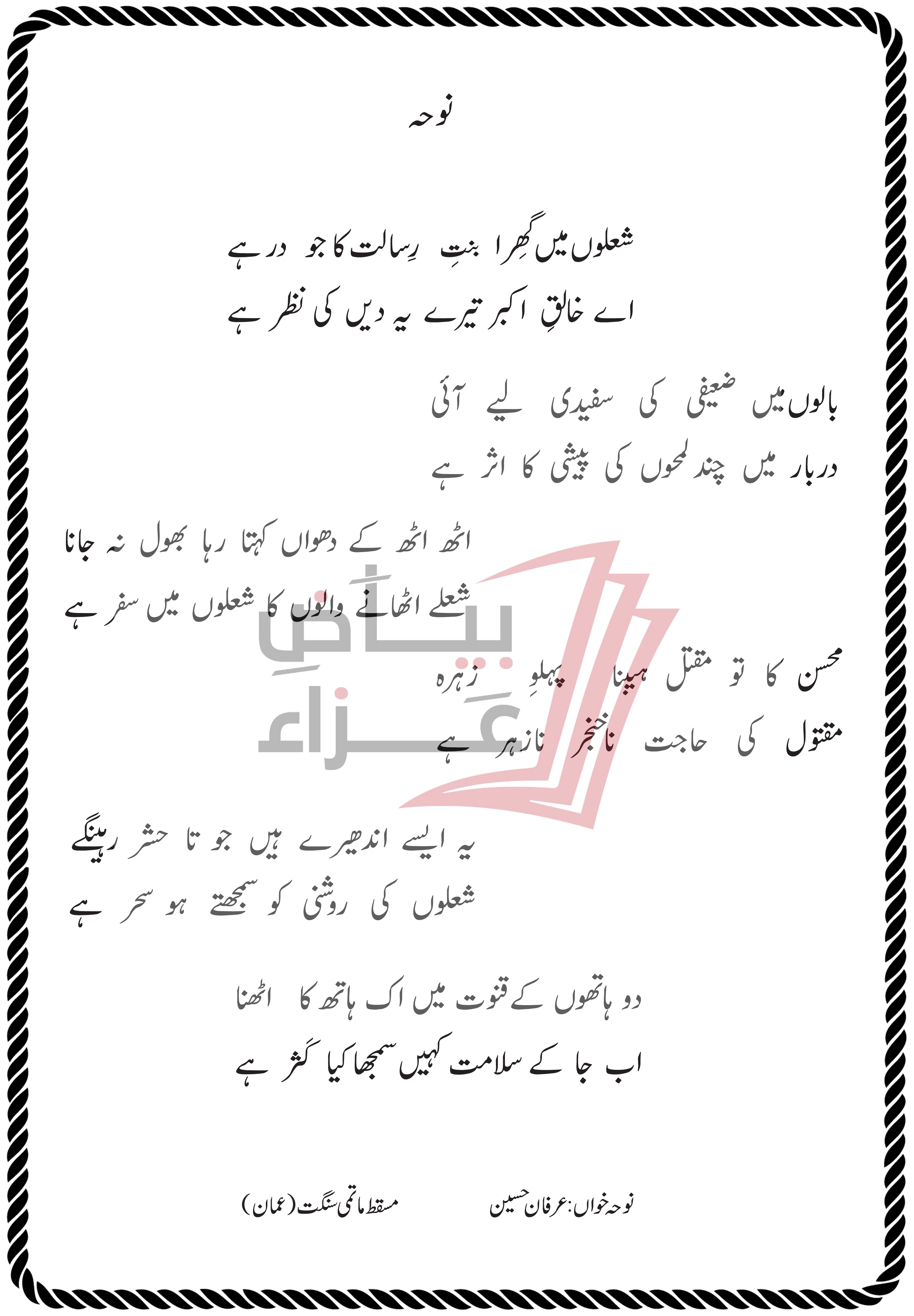 شعلوں میں گھرا بنتِ رسالت کا جو گھر ہے