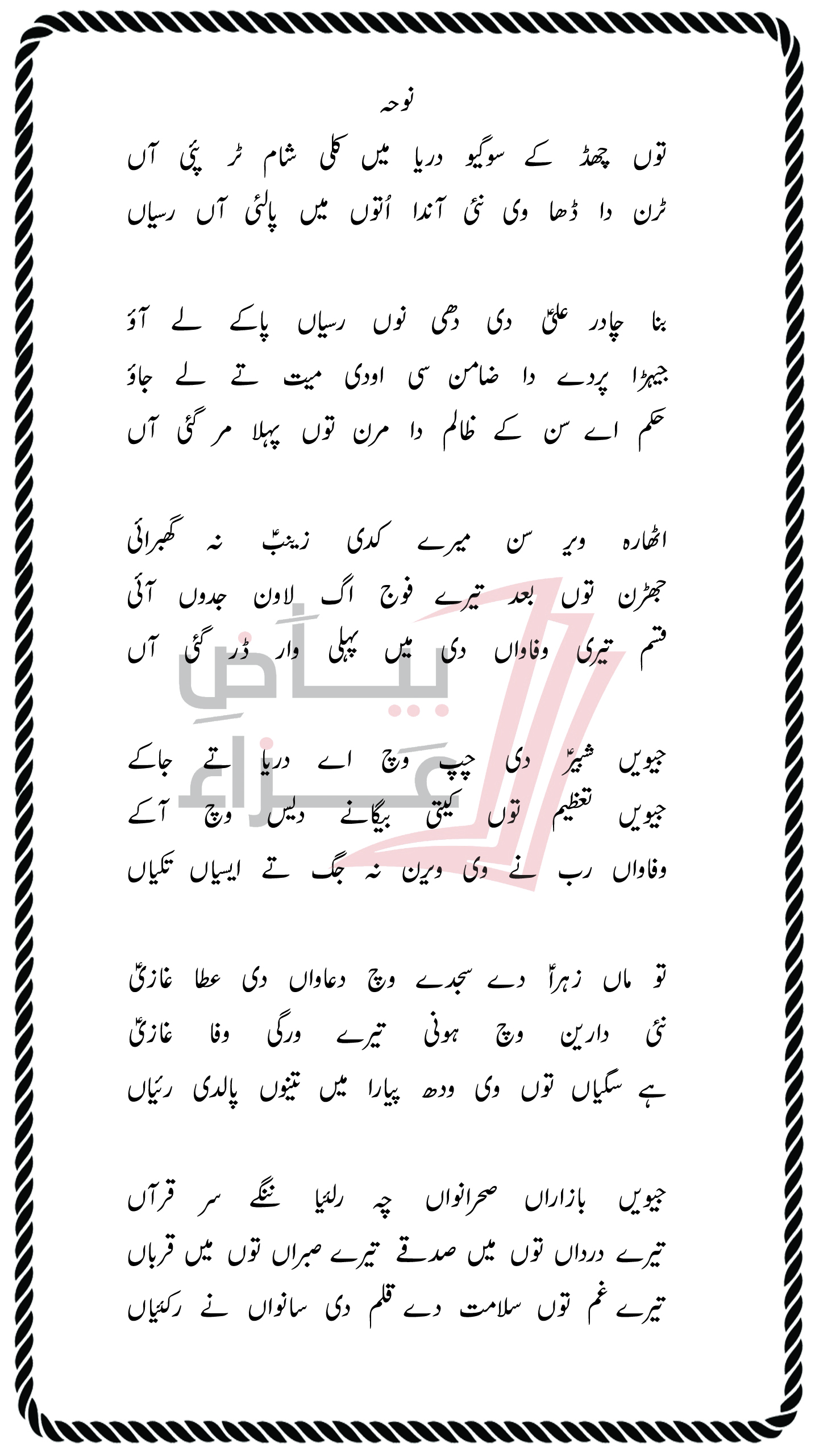 سوگیو دریا میں کلی شام ٹر گئیاں تو چھڈ کے