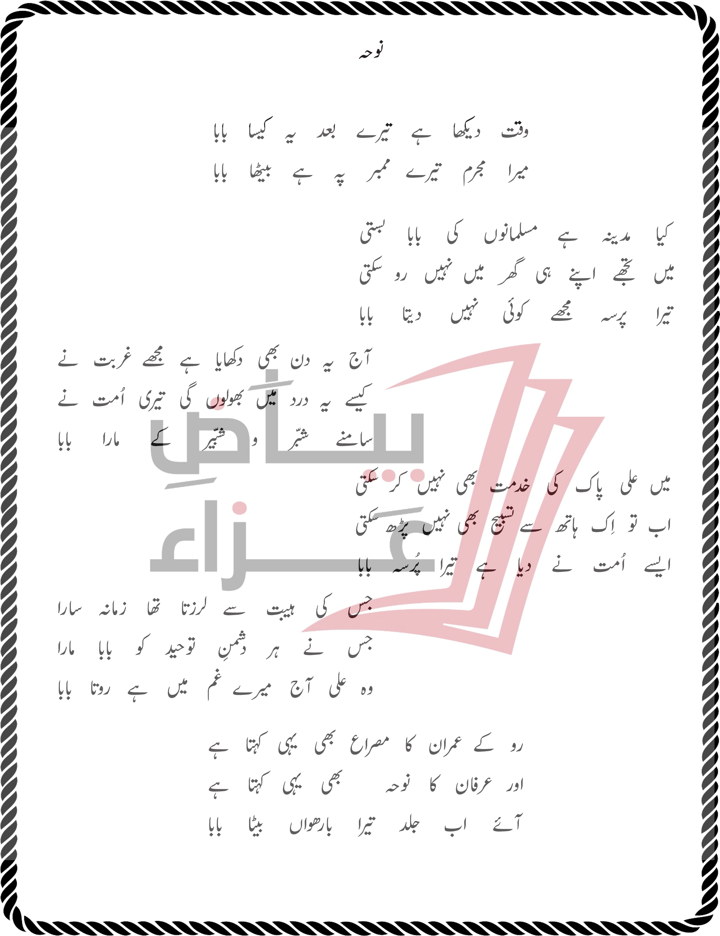 وقت دیکھا ہے تیرے بعد یہ کیسا بابا
