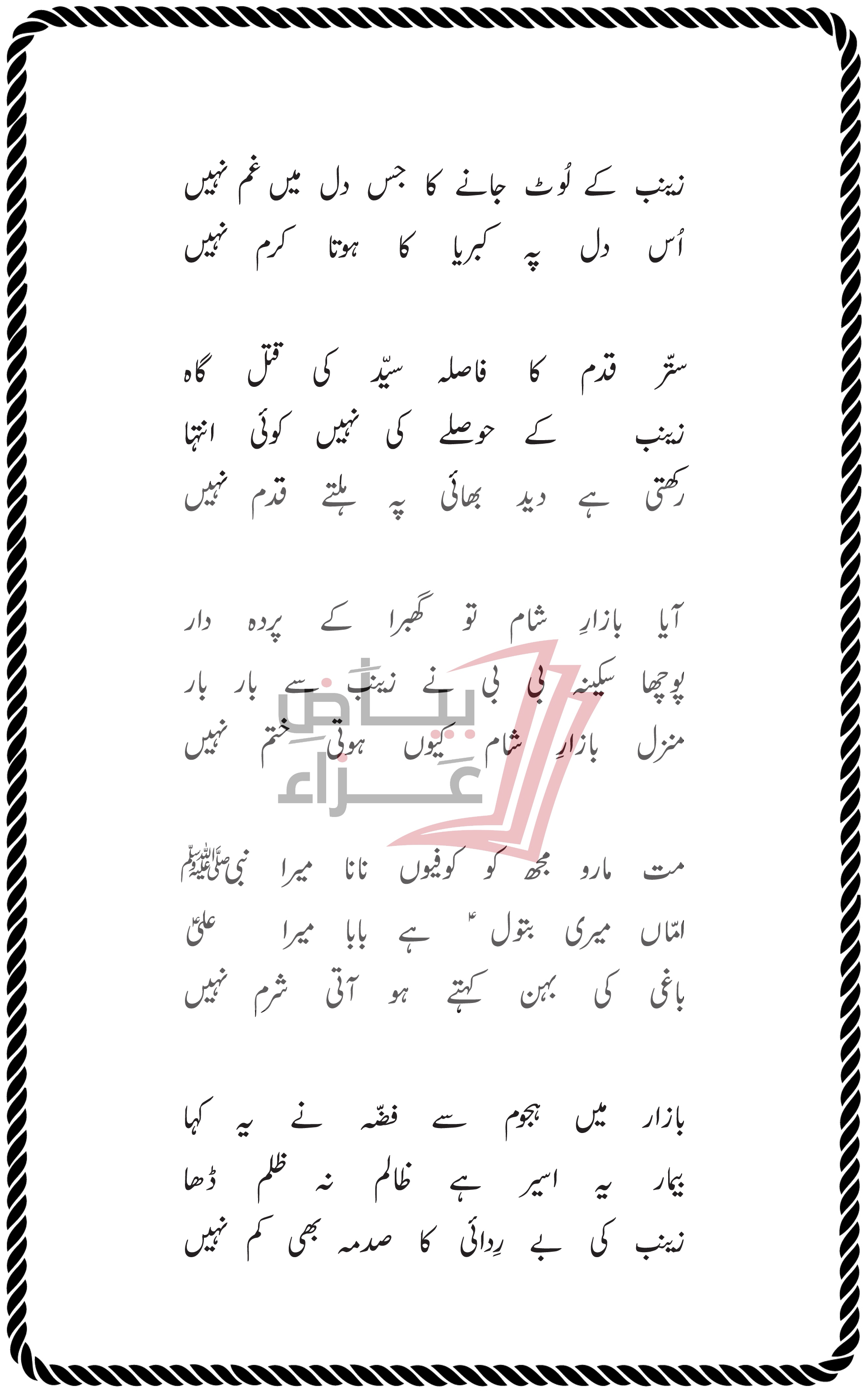 زینب کے لوٹ جانے کا جس دل میں غم نہیں